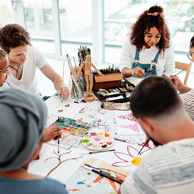 Du möts av ett tryggt rum för samtal, reflektion och kreativt arbete som hjälper dig att hitta klarhet,